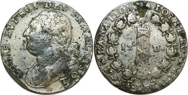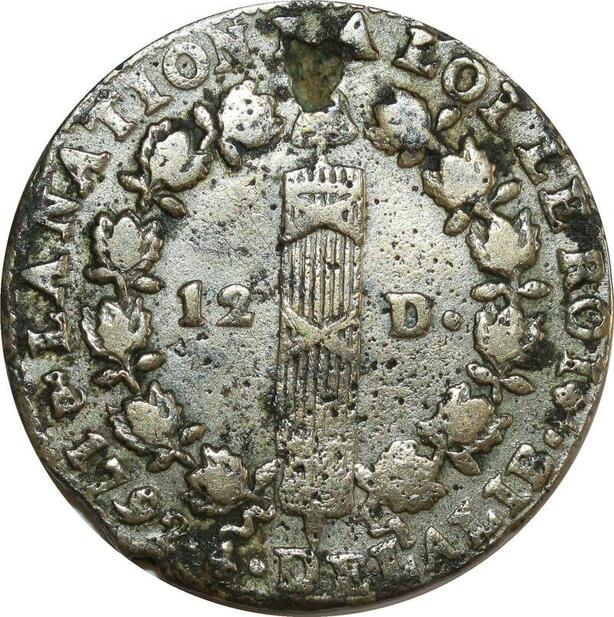 O8347 Rare Constitution 12 deniers Louis XVI an 4 1792 T. Saumur var lég basse