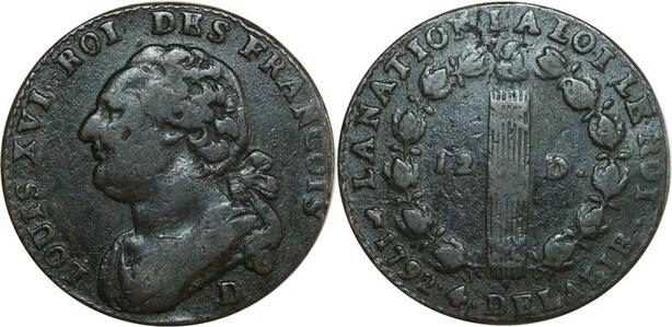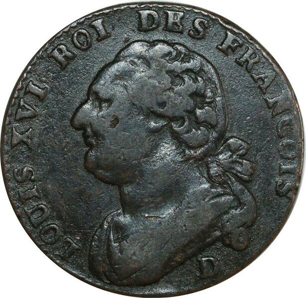 O8349 Rare France Constitution 2 Sols Louis XVI François An 4 1792 D Lyon