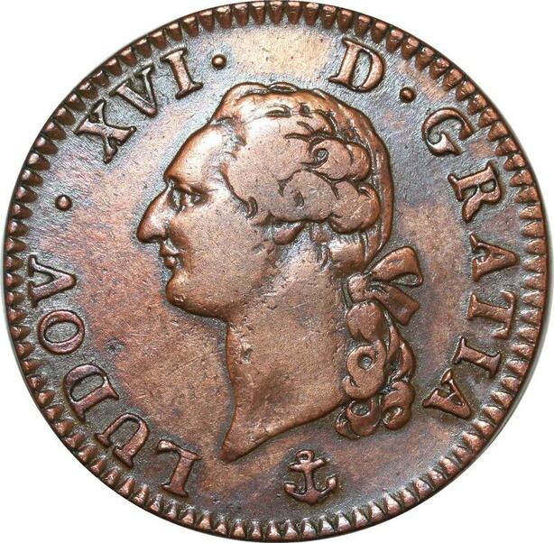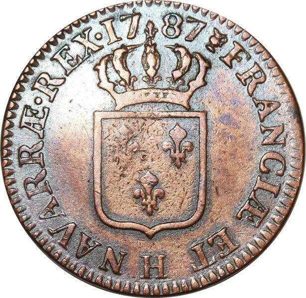O8356 Rare France R2 Sol Louis XVI 1787 H La Rochelle ->Make offer