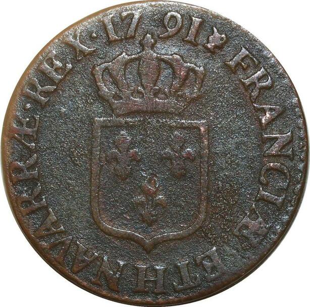 O8402 Rare France R2 1/2 Sol Louis XVI 1791 H La Rochelle ->M offre