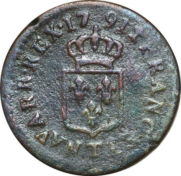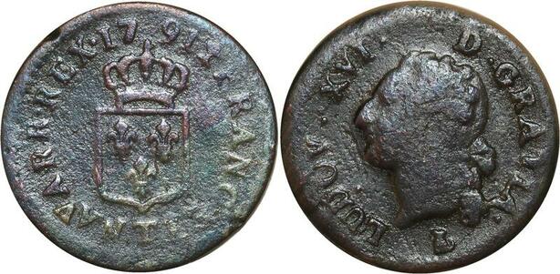 O8405 Rare France Liard Louis XVI 1791 T Nantes 2eme sem ->M offre