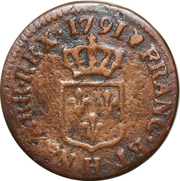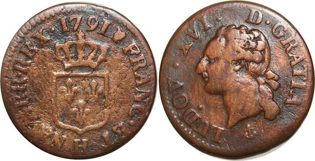 O8406 Rare France R3 Liard Louis XVI 1791 H La Rochelle ->M offre