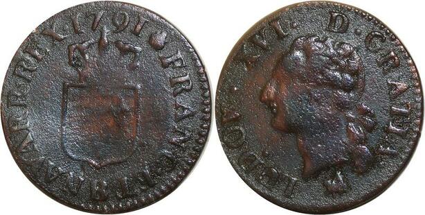 O8409 Rare France R3 Liard Louis XVI 1791 B Rouen 2eme sem ->M offre