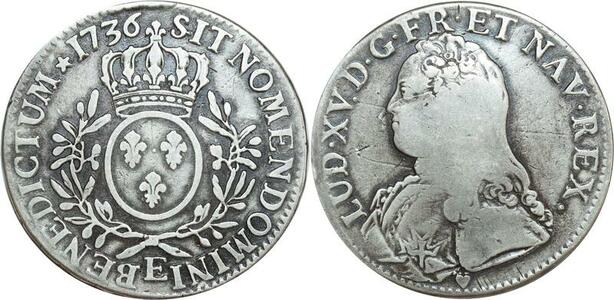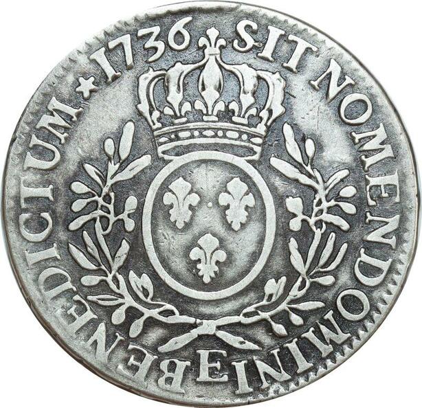 O8422 Rare France Ecu Louis XV br oliviers 1736 E Tours Argent ->Make offer