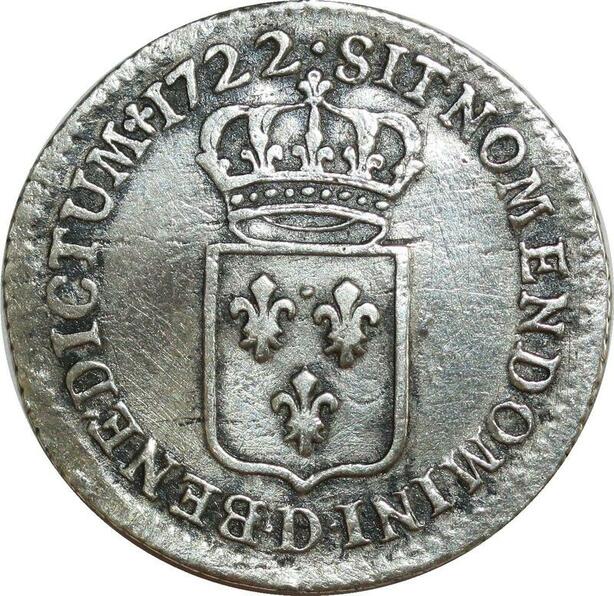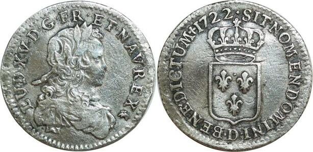O8431 Rare France 1/6 Ecu de France Louis XV 1722 D Lyon Argent ->Make offer