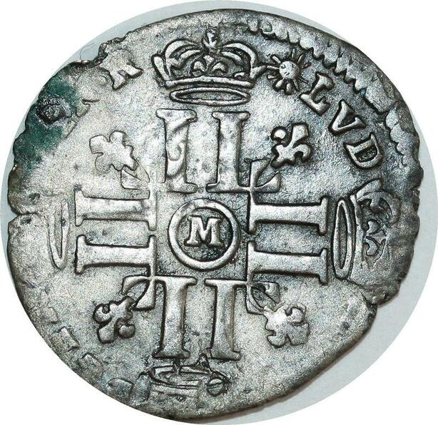 O8462 France Sol 15 Deniers Louis XIV 1693 M Toulouse Flan reformé ->Faire offre