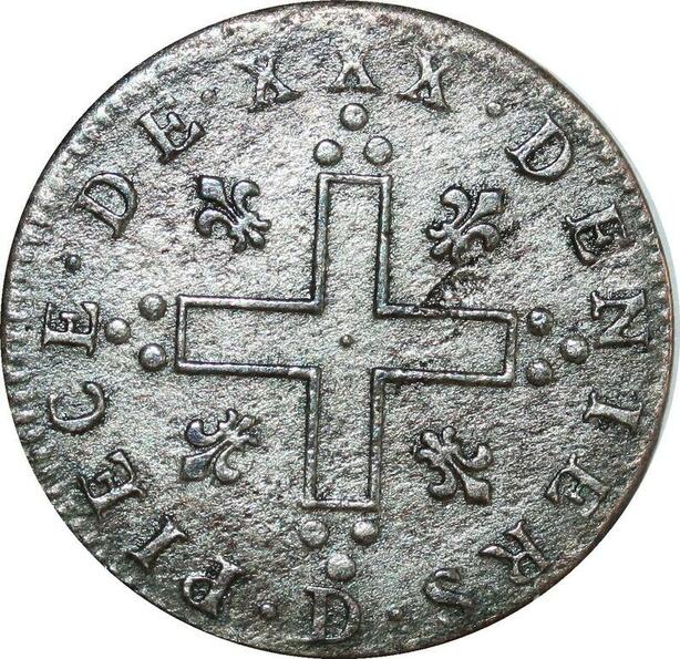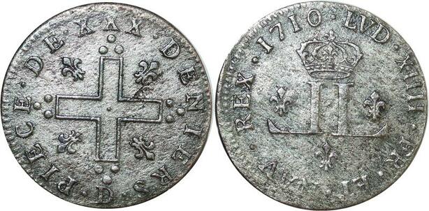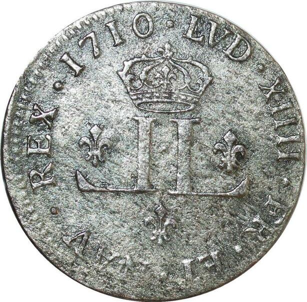 O8464 Rare France 30 Deniers Mousquetaire Louis XIV 1710 D Lyon TTB+