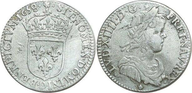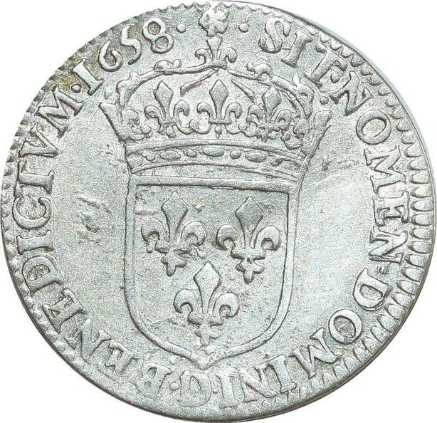 O8476 France 1/12 Ecu m longue Louis XIV 1658 D Lyon Argent ->Make offer