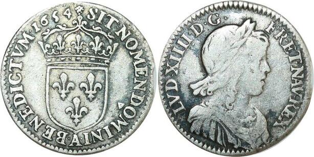 O8477 France 1/12 Ecu m longue Louis XIV 1654 A Paris Argent ->Make offer