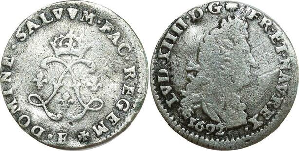O8481 France Rare France 4 Sols aux 2 L Louis XIV 1692 E Tours Argent ->Make offer