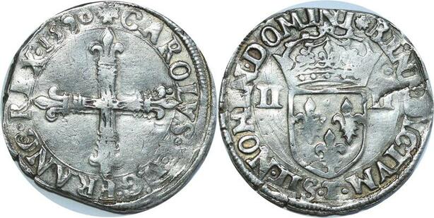 O8533 Rare France 1/4 Ecu Charles X Cardinal Bourbon 1590 T Nantes Argent ->M offre