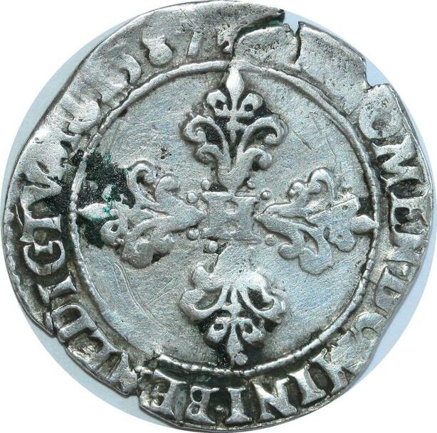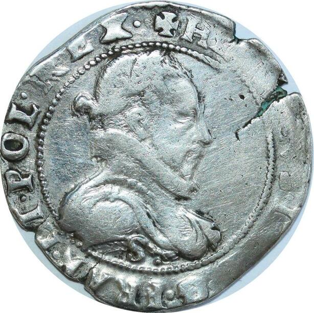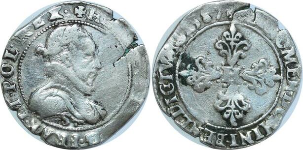 O8546 Rare France demi-franc Henri III col plat 1587 S Troyes Argent ->M offre