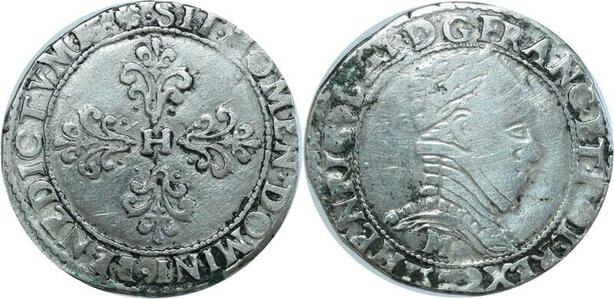 O8548 Rare France demi-franc Henri III 1589 M Toulouse Argent