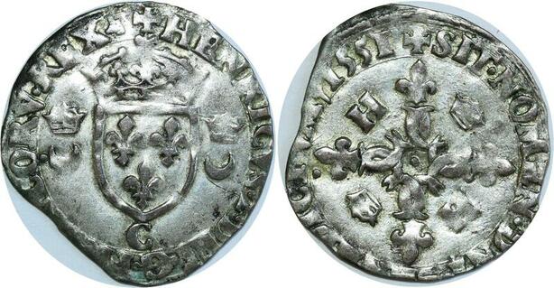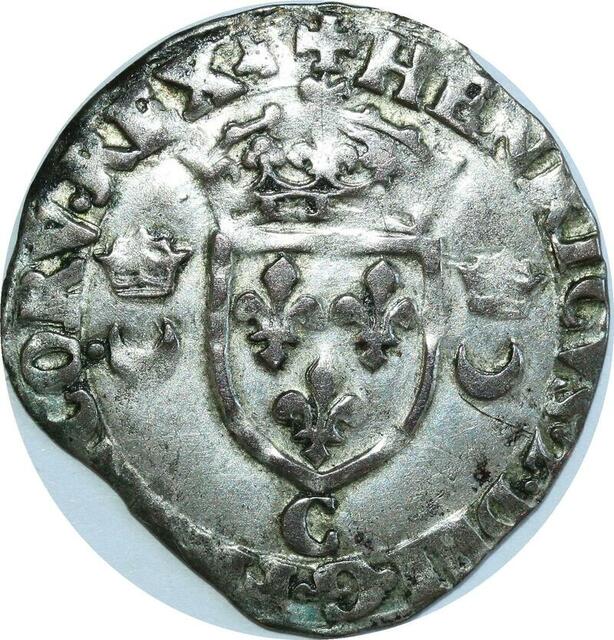 O8558 Rare France Henri II Douzain aux Croissants 1551 C Saint-Lö SUP !! ->Make offer