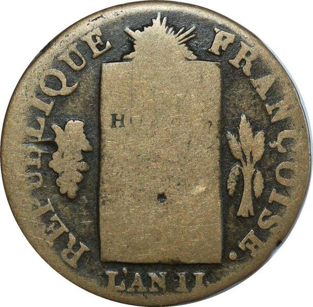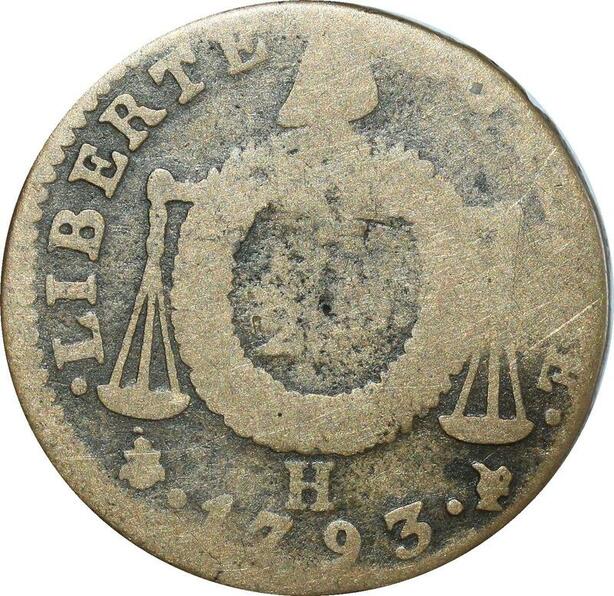 O8571 Rare France Convention 1/2 Sol Balances Louis XVI 1793 H La Rochelle ->Make offer