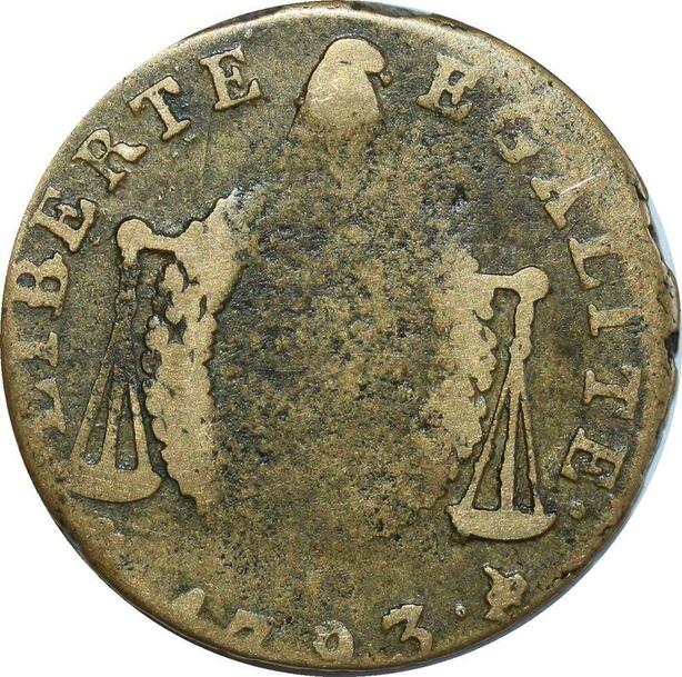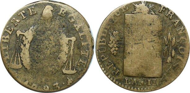 O8573 Rare France Convention 1/2 Sol Balances Louis XVI 1793 H La Rochelle ->Make offer
