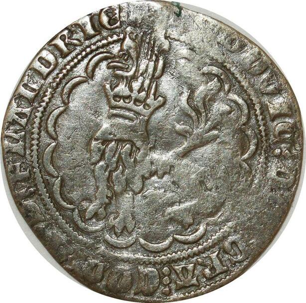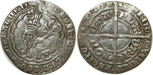 O8580 Rare Belgium RR Flandres Gros bodrager Louis de Male 1346-1384 Lion heaume