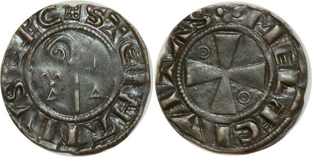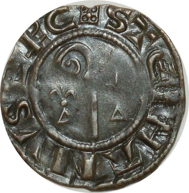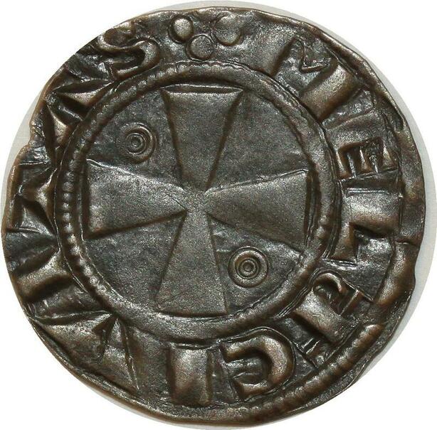 O8595 Rare France Denier Meaux Etienne Chapelle 1161-1171 Stephanus EPC
