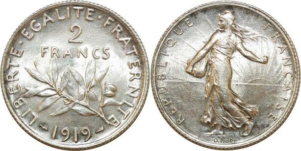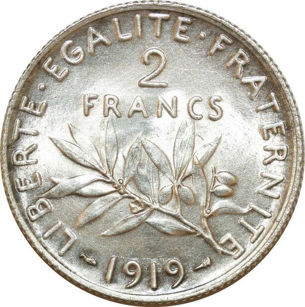 O8672 France 2 Franc Semeuse 1919 Argent FDC !!!! ->Make offer