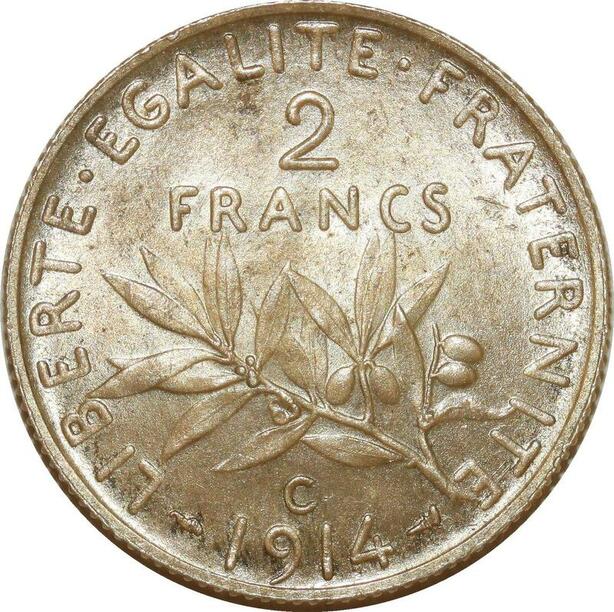 O8690 Rare France 2 Francs Semeuse 1914 C Castelsarrasin Argent Silver SPL ->M offre