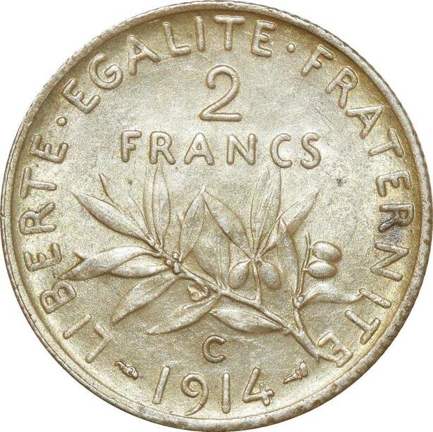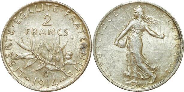 O8693 Rare France 2 Francs Semeuse 1914 C Castelsarrasin Argent Silver SUP+ ->M offre