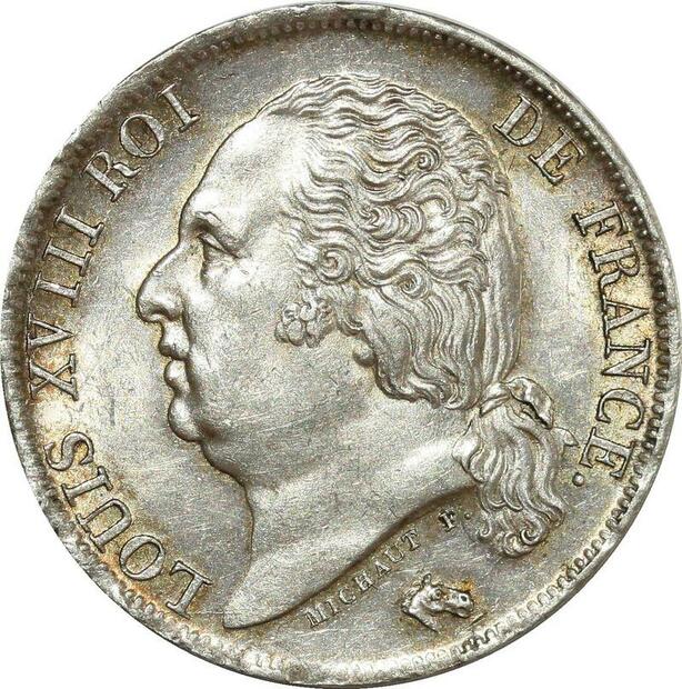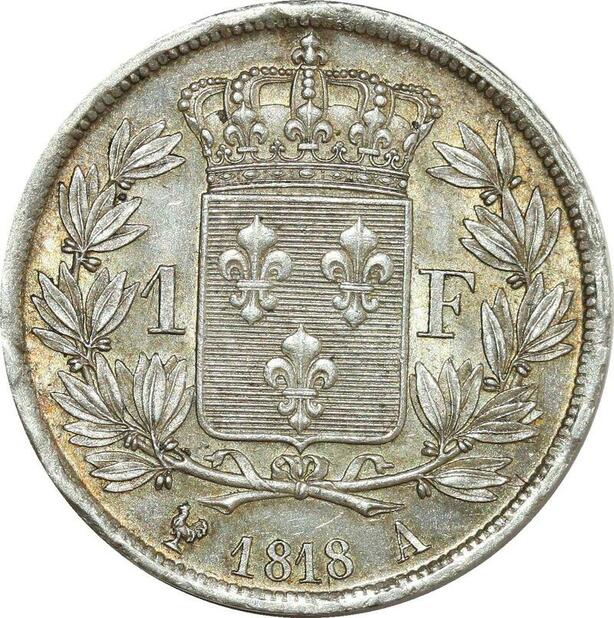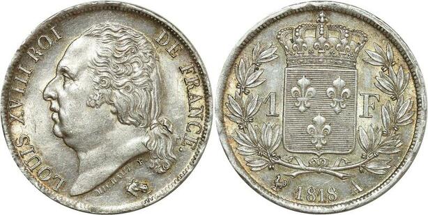 O8737 France Très Rare 1 Franc Louis XVIII 1818 A Paris Argent Silver PCGS MS63