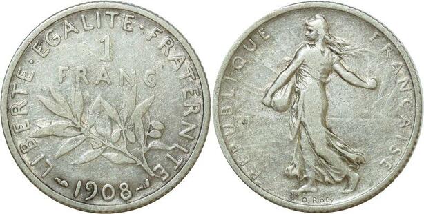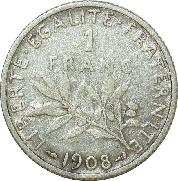 O8802 France 1 Franc Semeuse 1908 Argent ->Make offer