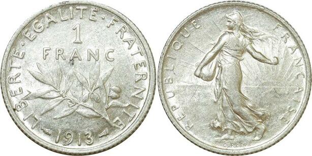 O8817 France 1 Franc Semeuse 1913 Argent SPL ->Make offer