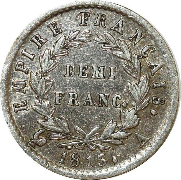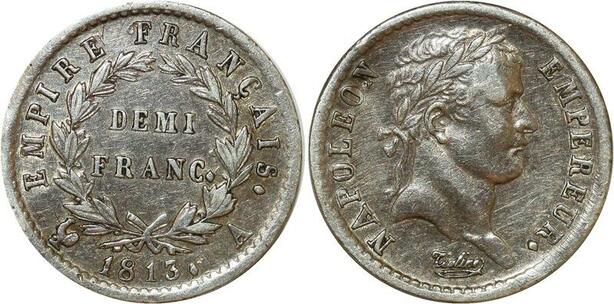 O8853 Rare France 1/2 Franc Napoléon I er 1813 A Paris Argent Silver SUP