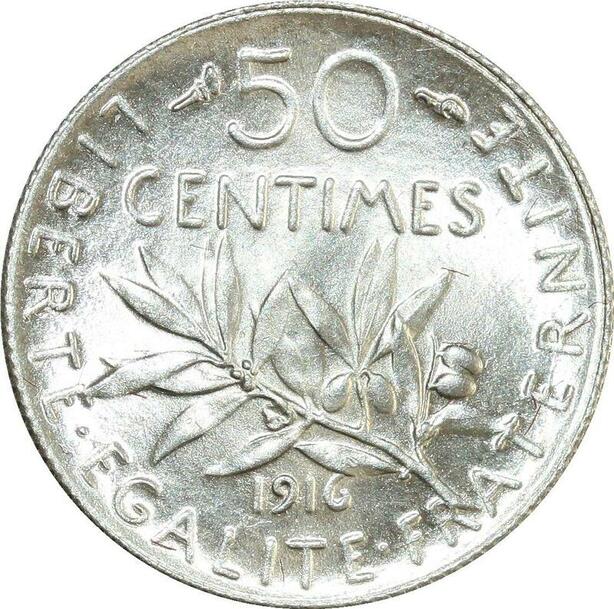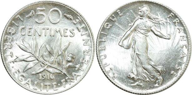 O8871 France 50 Centimes Semeuse 1916 Argent FDC !! Un Bijou !!! ->M offre