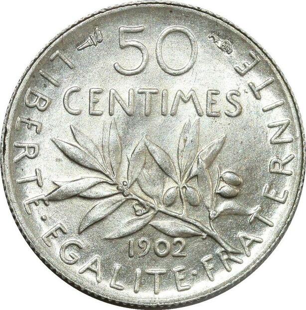 O8880 Finest France 50 Centimes Semeuse 1902 Argent SPL PCGS MS64 !!!!!!
