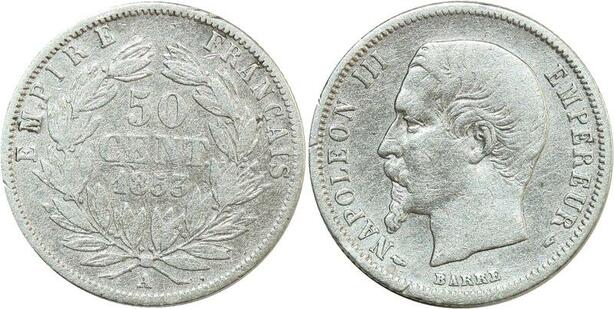 O8900 Rare France 50 Centimes Napoléon III 1853 A Paris Argent Silver