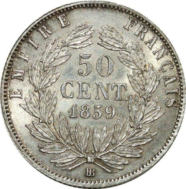 O8902 Rare France 50 Centimes Napoléon III 1859 BB Strasbourg SPL +++ FDC