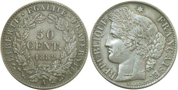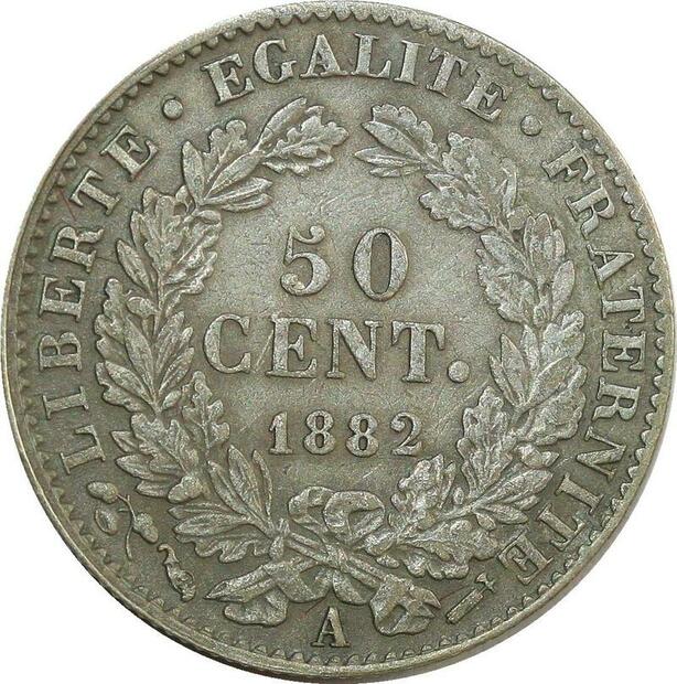 O8916 France 50 Centimes Cérès 1882 A Paris Argent ->Make offer