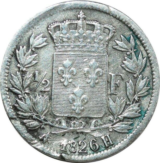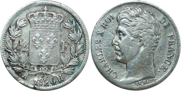 O8929 France Rare 1/2 Franc Charles X 1826 H La Rochelle Argent ->Make offer