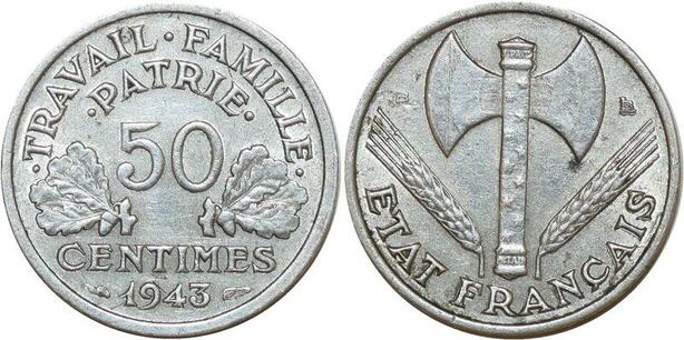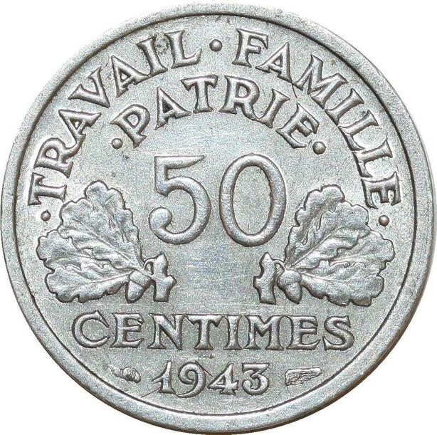 O8956 France 50 Centimes Françisque Bazor 1943 B Beaumont le Roger TTB+