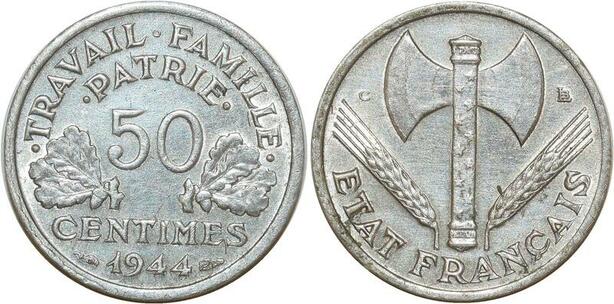 O8960 France 50 Centimes Françisque Bazor 1944 C Castelsarrasin SUP