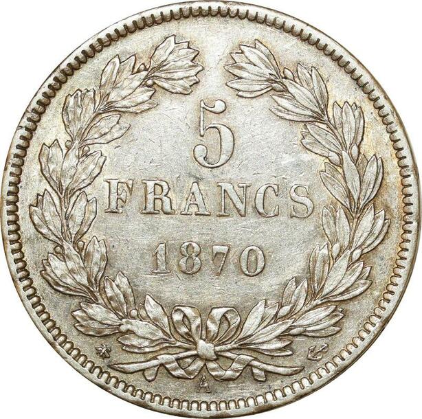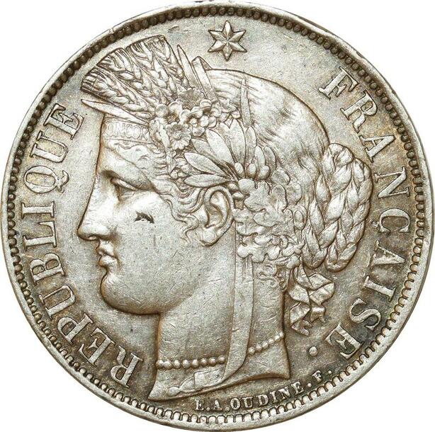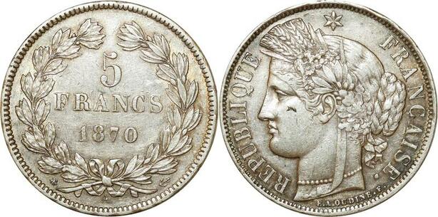 O8970 Rare 5 France Cérès Sans Légende 1870 A Paris Argent TTB+