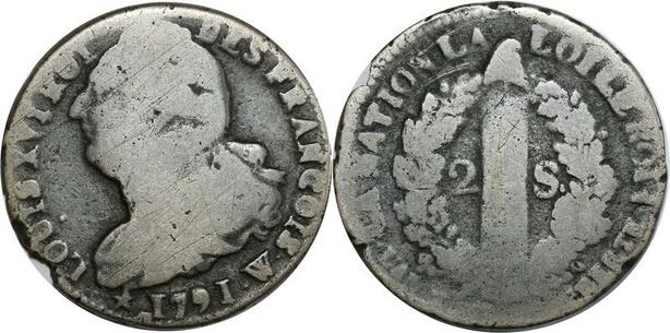 O8988 France Constitution 2 Sols Louis XVI François An 3 1791 W Lille ->Make offer
