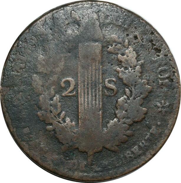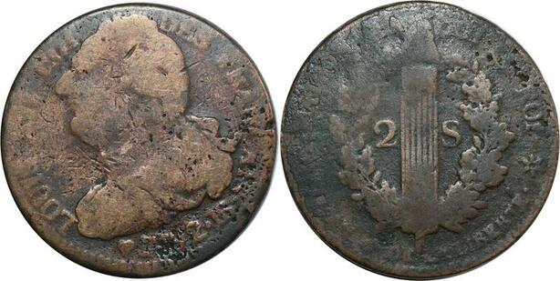O9005 France Constitution 2 Sols Louis XVI François 1792 BB Strasbourg ->Make offer
