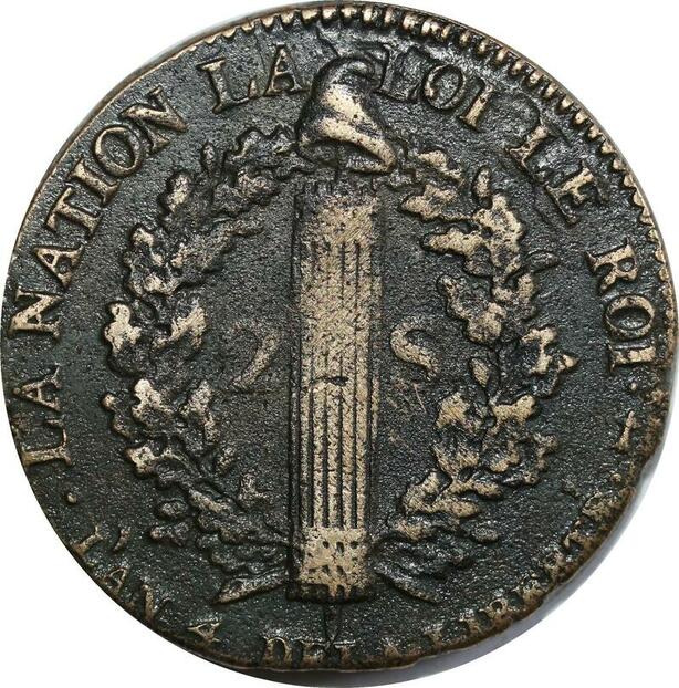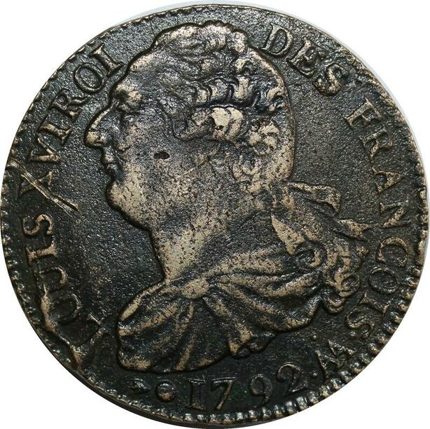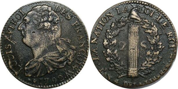 O9006 Très Rare France Inedit 2 Sols Louis XVI An 4 1792 (point ) AA Qualité !!