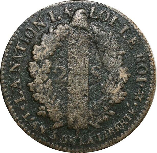 O9017 France Constitution 2 Sols Louis XVI Francais An 5 1793 BB Strasbourg
