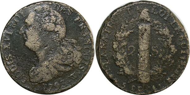 O9022 France Constitution 2 Sols Louis XVI François An 5 1793 W Lille ->Make offer