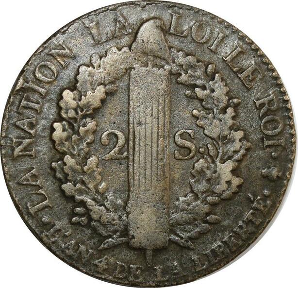 O9026 Rare France Constitution 2 Sols Louis XVI François An 4 1792 A Paris TTB !!!