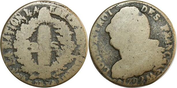 O9032 France Rare Fauté 2 Sols Louis XVI François 1792 AA Metz Double Frappe
