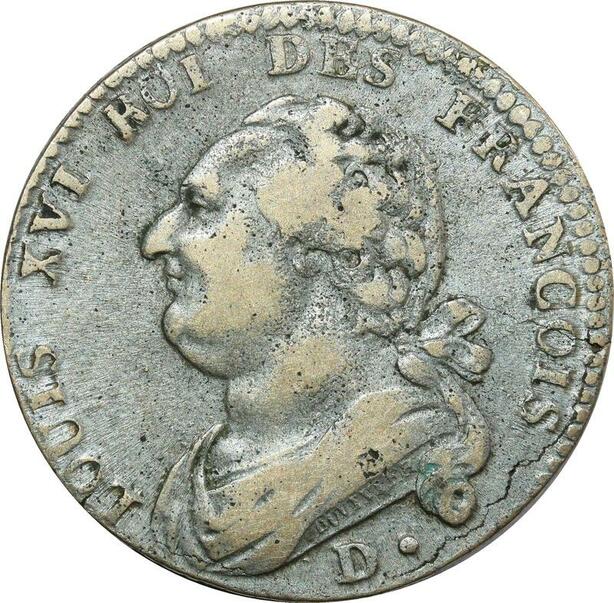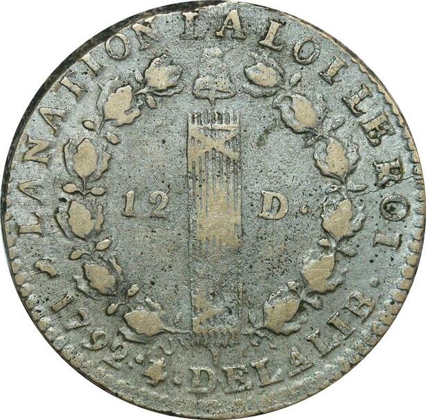 O9053 Rare France 12 Deniers Louis XVI François An 4 1792 D. Dijon Qualité !!!
