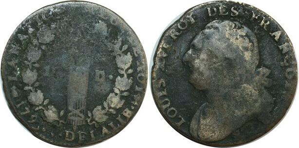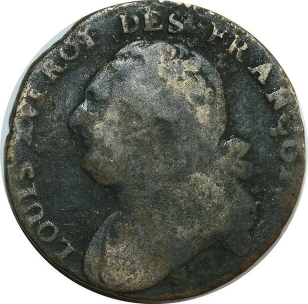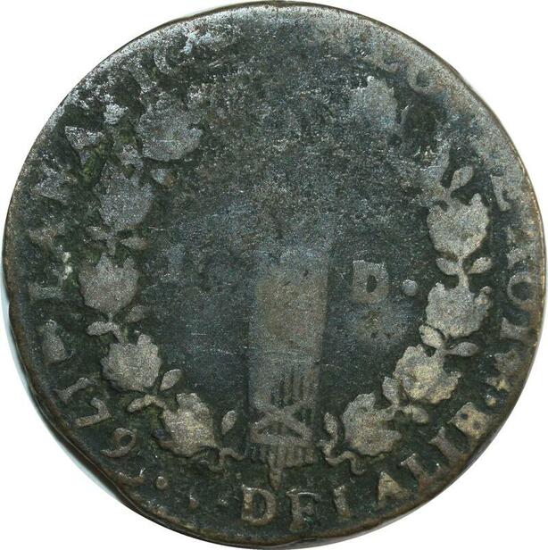O9069 Rare France Constitution 12 Deniers Louis XVI François sans "an" 1793 T Nantes
