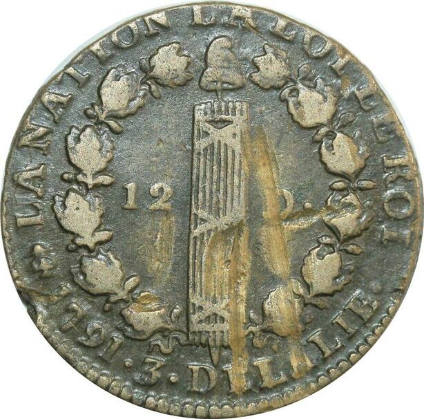 O9070 France Constitution 12 Deniers Louis XVI François 3 1791 A Couvent Barnabites