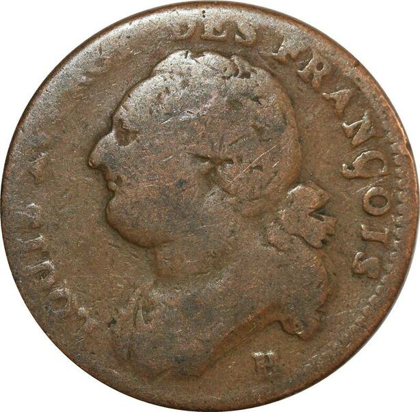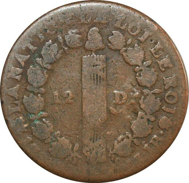 O9079 Rare France double Frappe 12 Deniers Louis XVI François 1793 B Rouen