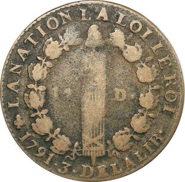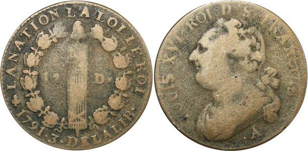 O9106 France Constitution 12 Deniers Louis XVI François 3 1791 A Couvent Barnabites